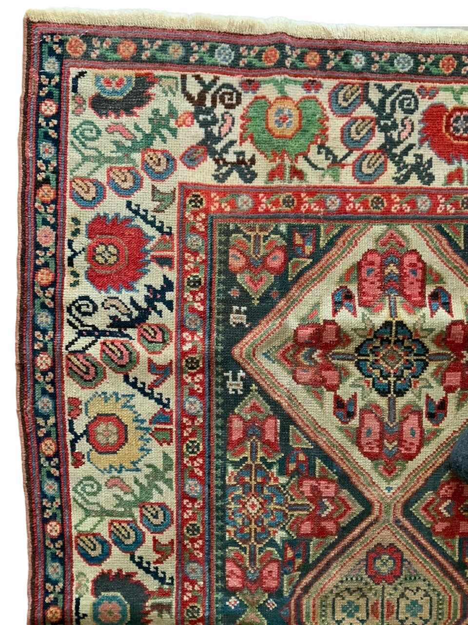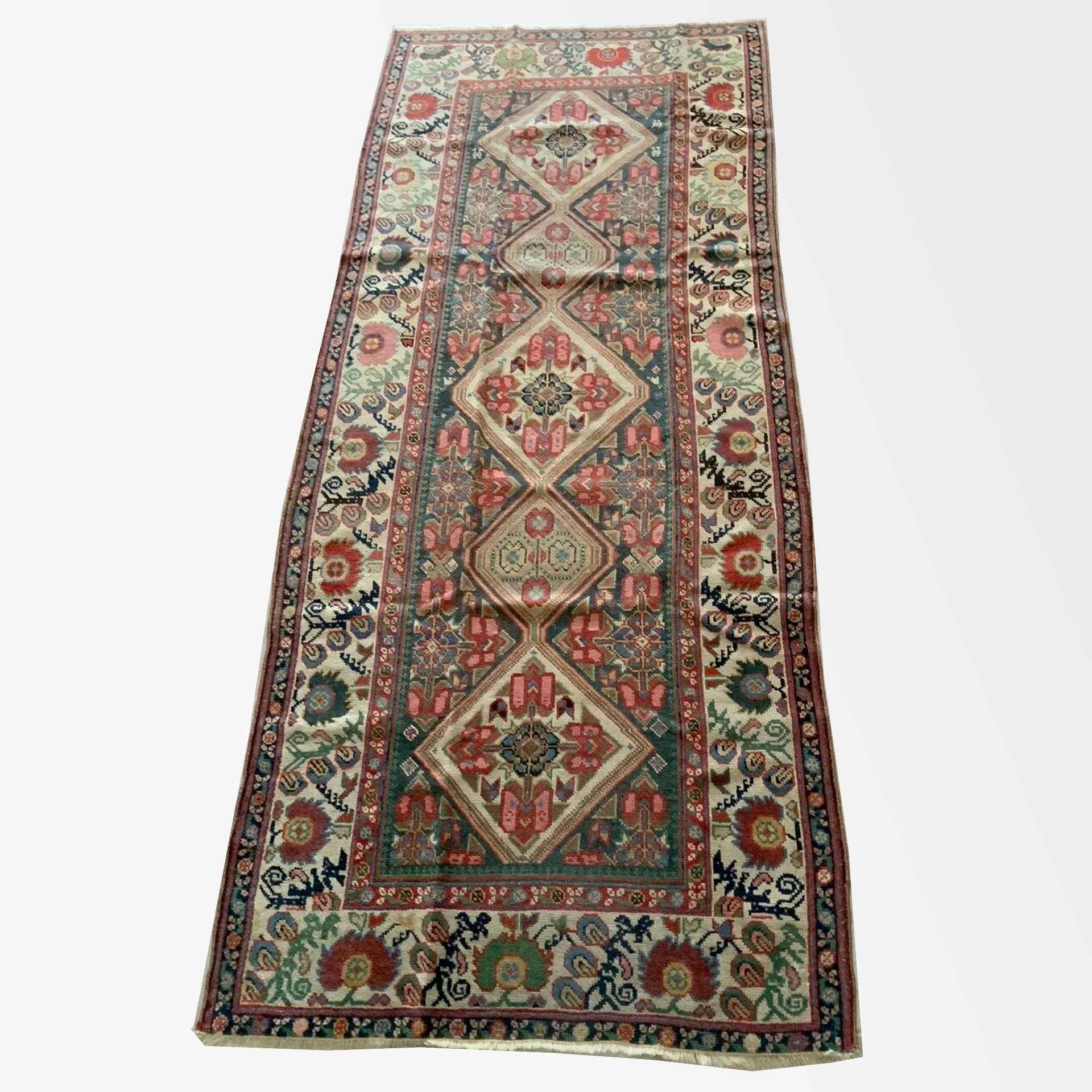 Karabagh Antico fine 800, in perfette condizioni di uniformità di vello e morbidezza. Molto particolare il disegno per forma e brillantezza dei colori naturali. Vello, trama e ordito in lana. Esemplare importante.