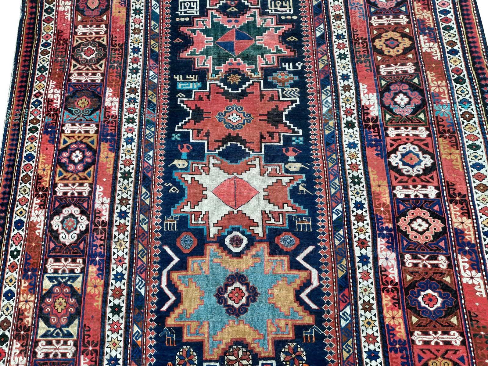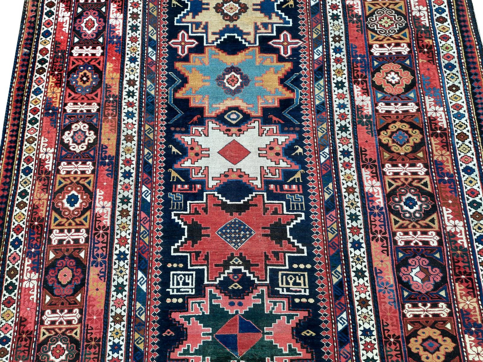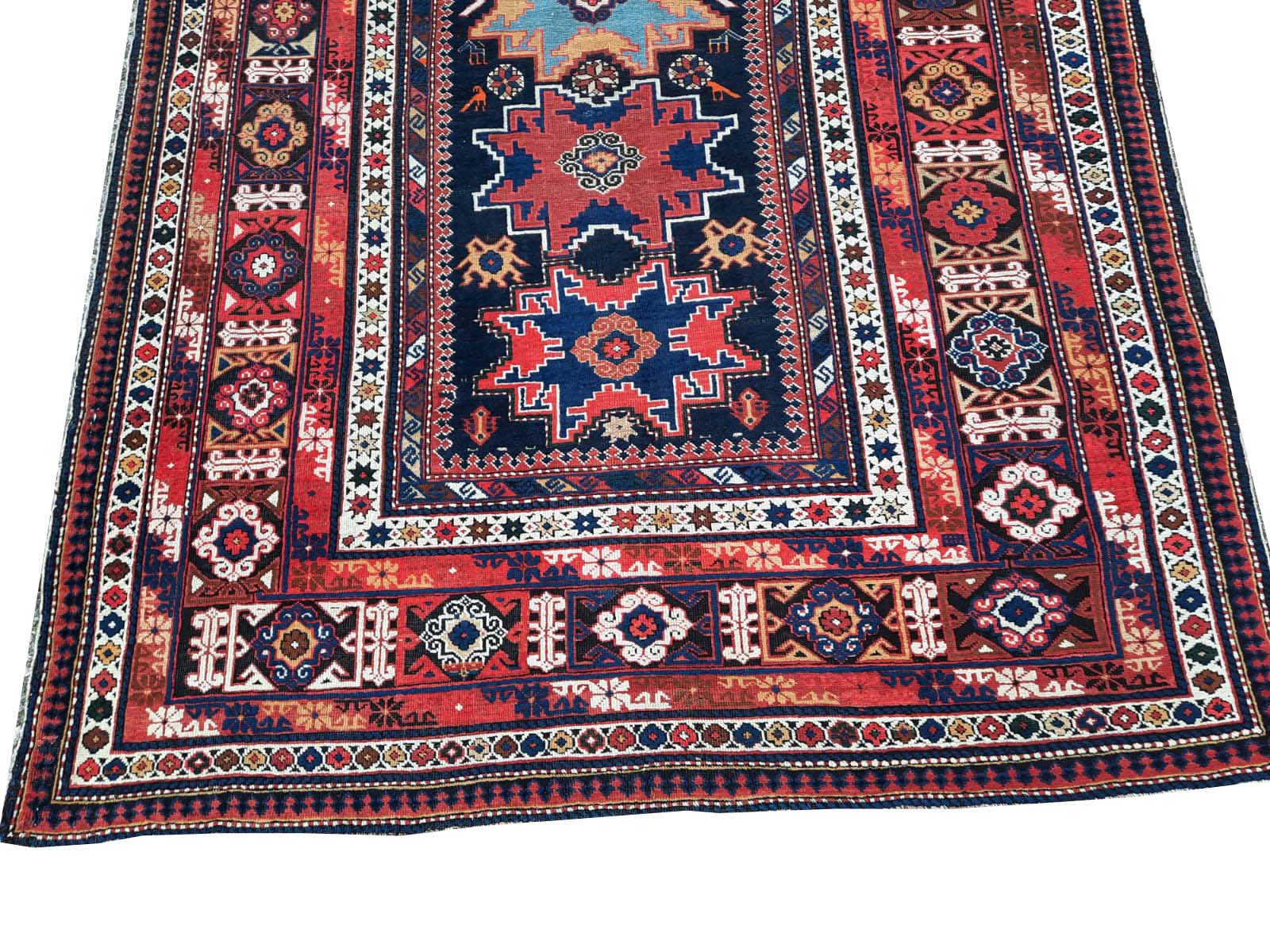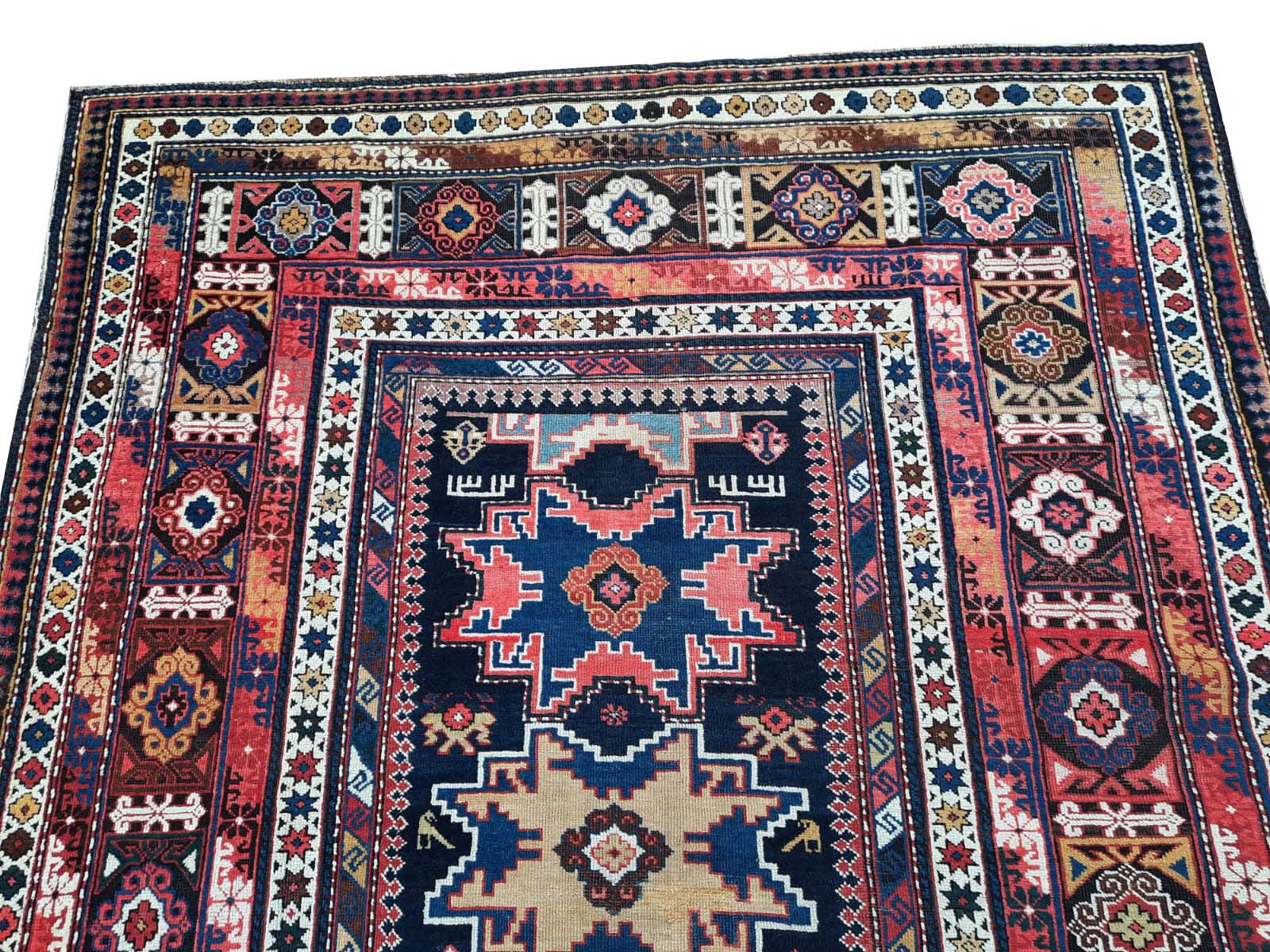 Eccellente Tappeto Antico SHIRVAN autentico proveniente dal Caucaso datato fine ‘800 interamente annodato a mano, dal tessuto pregiato e resistentissimo con vello in pura lana, trama e ordito in lana.